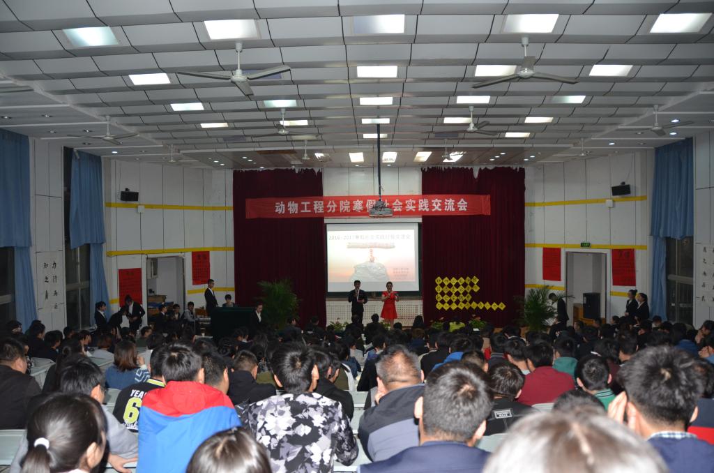 3月20日晚,动物工程分院学生寒假社会实践交流会在西校区举行,杨凌瑞琪农牧有限公司经理陈海利,动物工程分院党总支书记,学工办主任,教研室主任,辅导员、班主任及学生近400人参加了交流会。