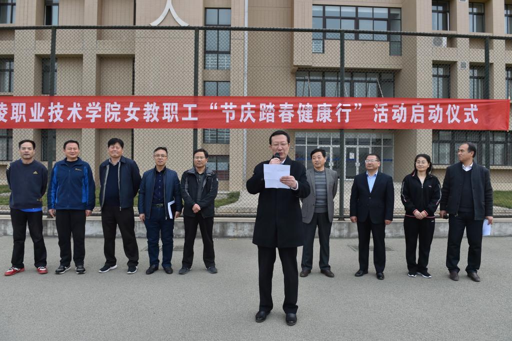 阳春三月,柳丝依依,春回大地,万物复苏。在第107个“三八”国际劳动妇女节来临之际,为进一步丰富我院女教职工业余文化生活,倡导科学、健康的生活方式, 3月6日下午,院工会在南校区操场组织了女教职工“节庆踏春健康行”活动。党委副书记任得元出席启动仪式,院工会主席、副主席,各基层分会主席及全体女教职工共 400余人参加了本次活动。