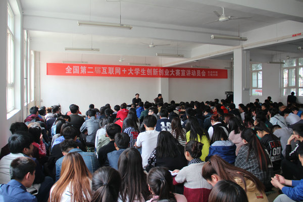 生态环境工程分院在物竞楼一楼西大厅召开了第二届全国互联网+大学生创新创业大赛宣讲动员会,分院老师及学生代表500多人参加。分院负责同志进行了宣讲并就相关工作进行了部署和动员。