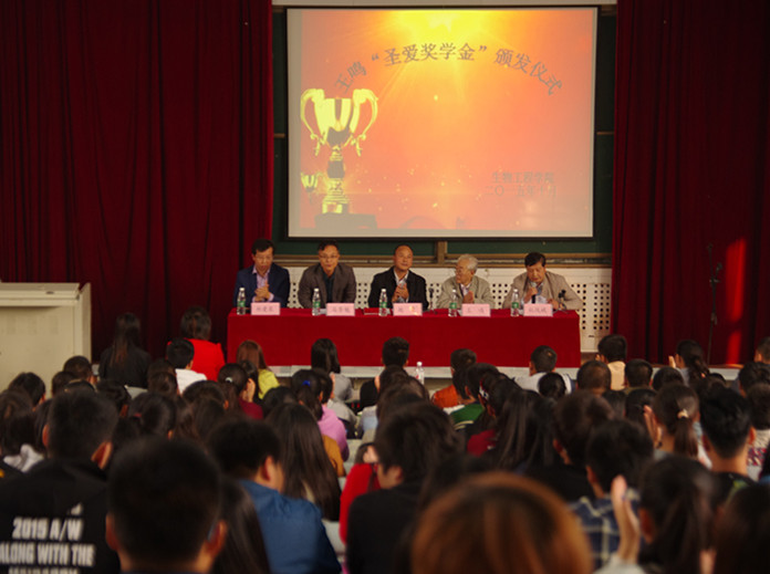 王鸣教授是西北农林科技大学园艺学院博士生导师,曾先后资助了山东枣庄及陕西丹凤的13名失学儿童上学,用所获科研奖金捐建“圣爱希望小学”,先后在西北农林科技大学和鲁东大学设立扶贫助学奖学金,被誉为慈善明星、励志导师。2012年11月,王鸣教授在我院生物工程分院设立了以他名字命名的“王鸣圣爱奖学金”,用来资助品学兼优、家境困难的大学生。截止目前,已有15名同学获得该奖学金,今年是第四次颁发该奖学金。