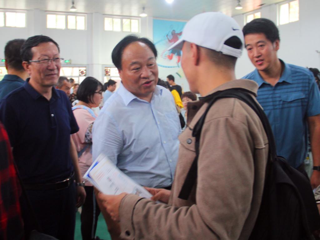 学院党委书记陈宁、院长王周锁、党委副书记任得元、副院长张迪到新生报名现场检查迎新工作,并与新生及其家长交流。