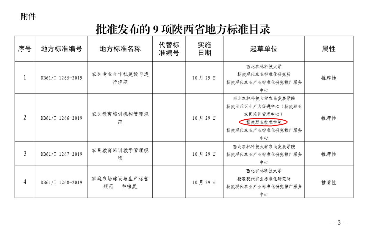 近日,陕西省市场监督管理局批准发布《农民教育培训机构管理规范》陕西省地方标准(DB61/T 1266-2019),该标准由4家单位联合起草,我院为参与单位。