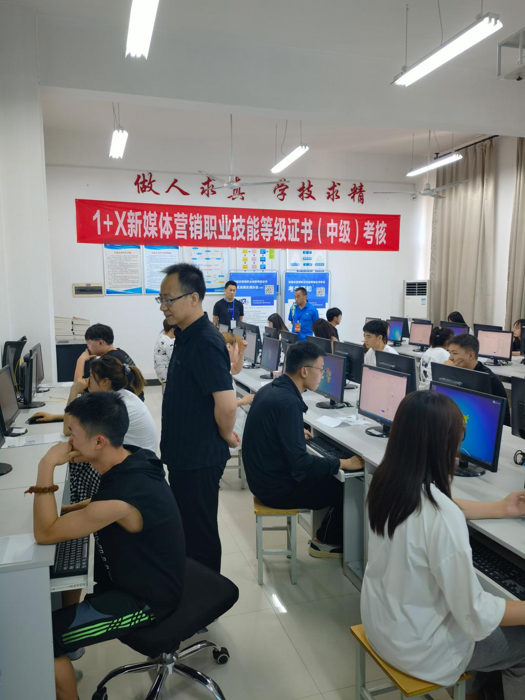 6月24日,经济与贸易学院举行2022年第一期“1+X”新媒体营销职业技能等级(中级)考试。来自工商企业管理20005班和21006班的25名学生参加考核。考试由评价组织全程进行线上监督巡查。