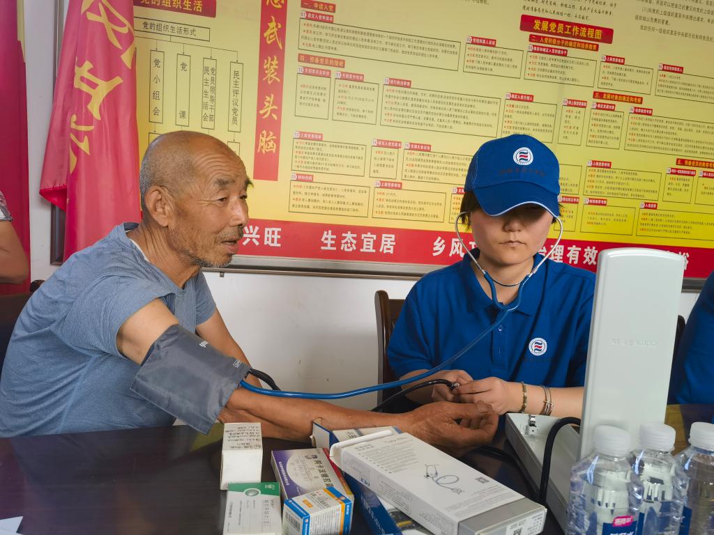 活动分工协调,解玉良副主任医师针对老年人的慢性疾病、疑难杂病和亚健康等号脉、开处方、作指导。党员教师为现场的老年人开展了全方位健康咨询服务,指导群众合理用药;支部学生党员发放合理用药科普手册,在老师的指导下,为老年人完成了血压、血糖等常见指标的测定,开展了老年人慢性病等信息调研,并建立一人一册健康档案。针对不合理用药和保健习惯,通过细致耐心讲解,纠正了老年人的用药习惯。同时,发挥联合共建的示范区工商局第三党支部资源优势,推荐了三高人群的夏日饮食食谱,发放了止痛膏药200余份,完成了全村50余名老年人健康服务工作。