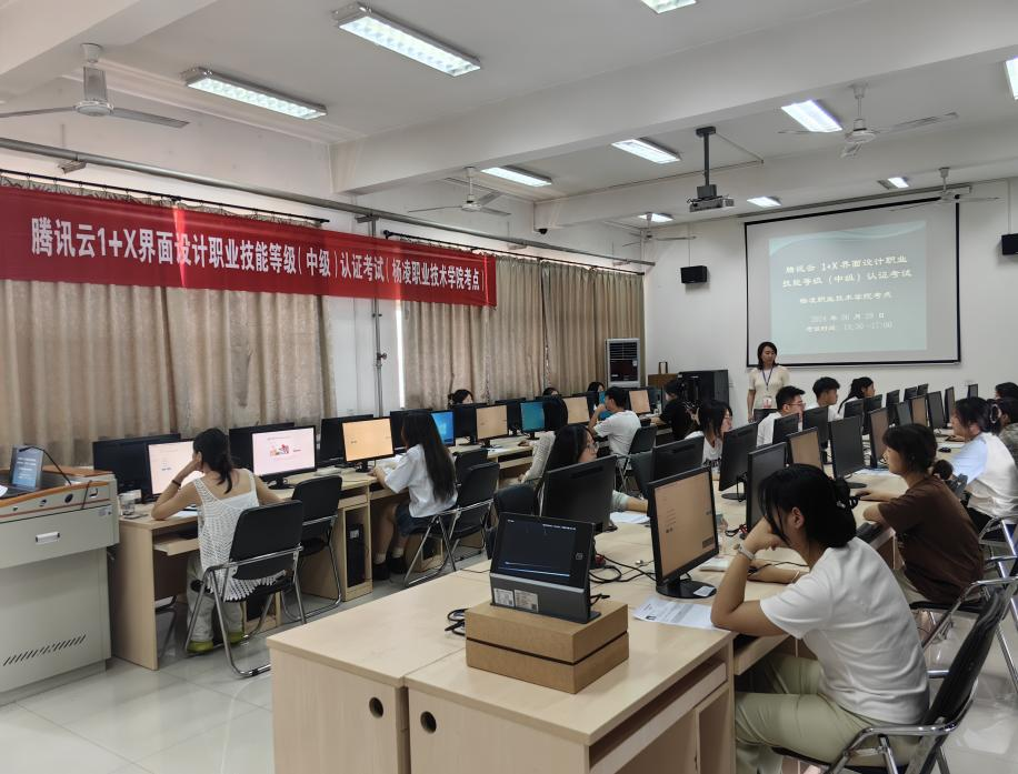 6月29日,华为“1+X”网络系统建设与运维(中级)、腾讯云“1+X”界面设计(中级)职业技能等级认证考试在南校区信息工程学院举行,信息工程学院35名同学参加了考试。
