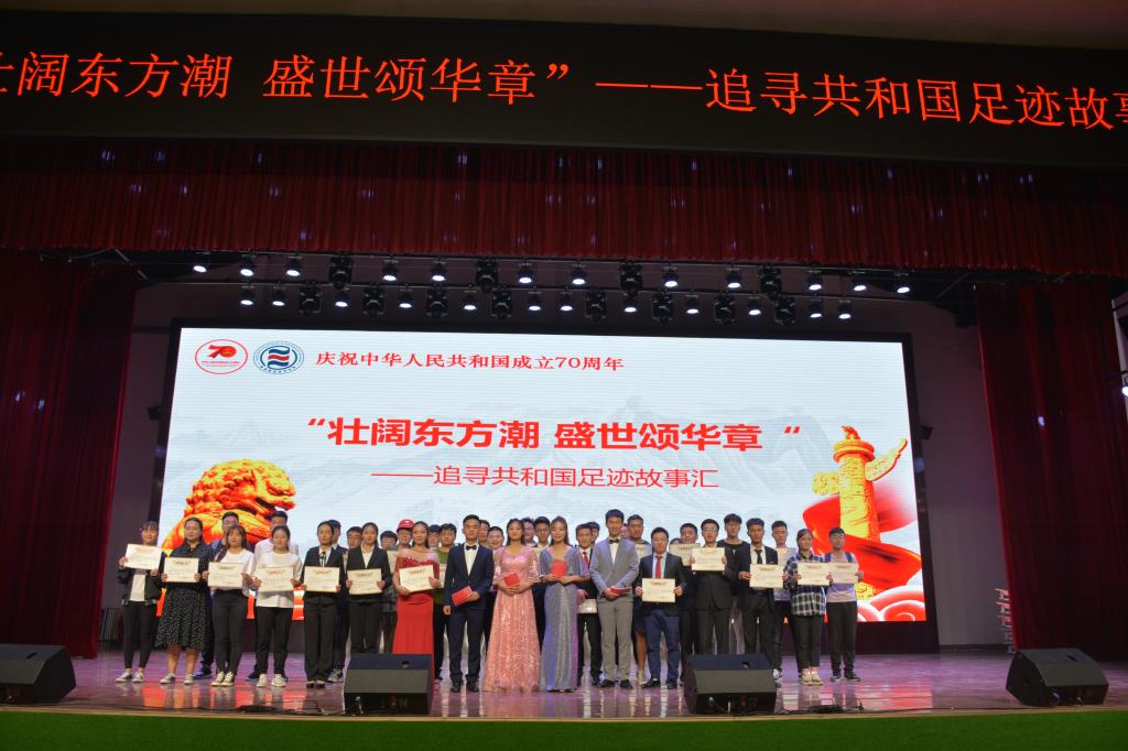 为庆祝新中国成立70周年,开展爱国主义教育,9月29日晚7点,思想政治理论课教学部在南校区一卡通中心举办庆祝新中国成立70周年“壮阔东方潮,盛世颂华章”——追寻共和国的足迹故事汇展示活动。我院全体思政课教师、学生代表约1000余人参加。
