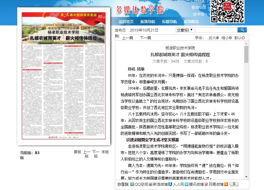 在新的征程中,全体杨职人将始终牢记先辈们“心怀社稷、情系苍生”的办学初衷,继续弘扬学院的治学精神和优良传统,扎根农城沃土育英才,立足三秦大地做贡献,努力将学院建设成为一所特色鲜明、优势突出、国内一流、国际知名的涉农高职院校,为建设中国特色高水平高职院校贡献杨职实践,绘就一幅多彩的高职教育新画卷!