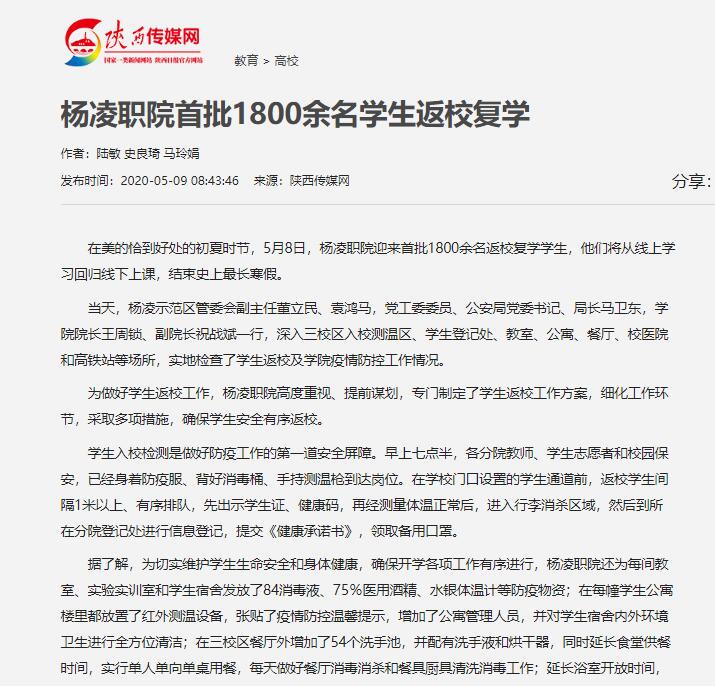 为做好学生返校工作,杨凌职院高度重视、提前谋划,专门制定了学生返校工作方案,细化工作环节,采取多项措施,确保学生安全有序返校。