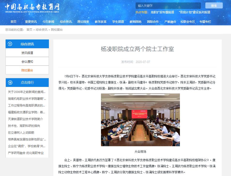 参加大会的还有杨凌职院党委委员、发展规划处处长张宏辉,党委委员、教务处处长拜存有,以及两校负责学科建设、人才培养、项目合作、干部与师资交流等方面工作的相关部门负责人。