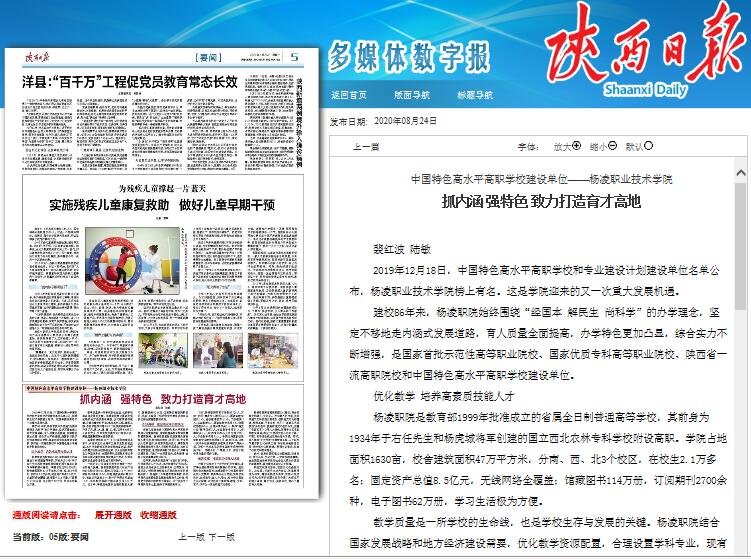 2019年12月18日,中国特色高水平高职学校和专业建设计划建设单位名单公布,杨凌职业技术学院榜上有名。这是学院迎来的又一次重大发展机遇。