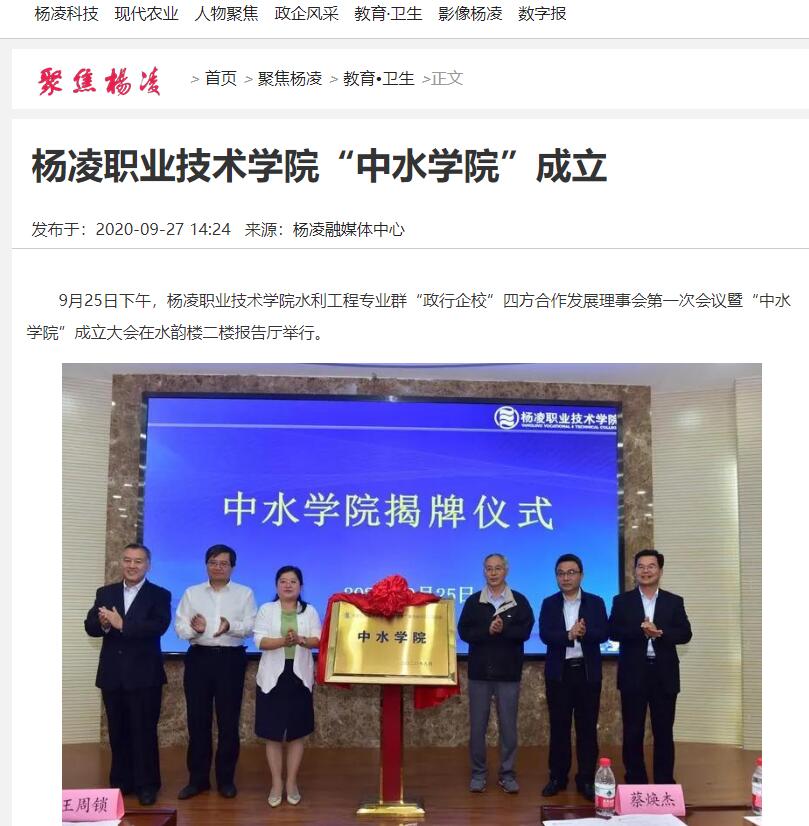 【农科新闻网】杨凌职业技术学院“中水学院”成立