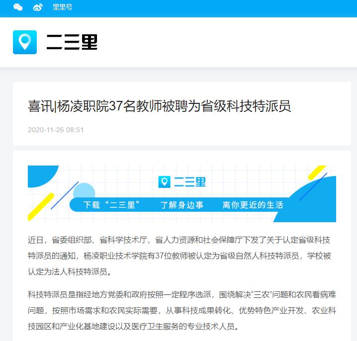 近日,省委组织部、省科学技术厅、省人力资源和社会保障厅下发了关于认定省级科技特派员的通知,杨凌职业技术学院有37位教师被认定为省级自然人科技特派员,学校被认定为法人科技特派员。