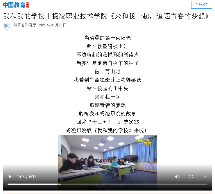 【中国教育发布】我和我的学校丨杨凌职业技术学院《来和我一起,追逐青春的梦想》