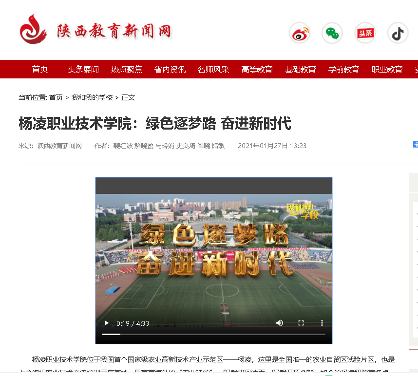 【陕西教育新闻网】杨凌职业技术学院:绿色逐梦路 奋进新时代