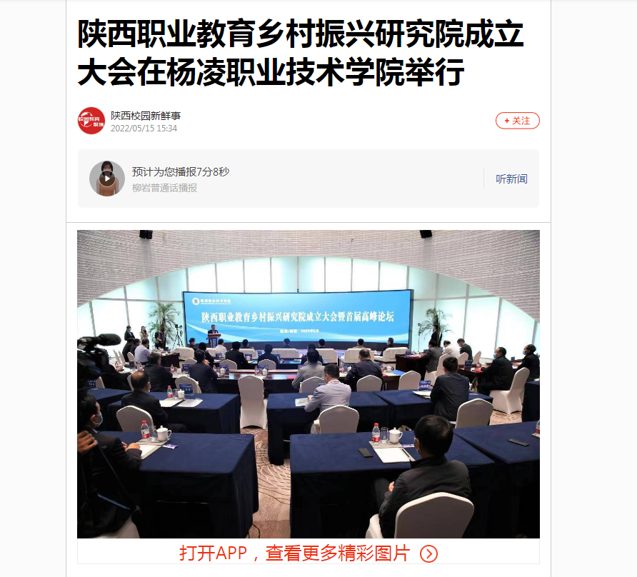 【搜狐新闻】陕西职业教育乡村振兴研究院成立大会在杨凌职业技术学院举行