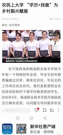 位于陕西省的杨凌职业技术学院今年有一个特殊的毕业班,毕业生的年龄普遍超过30岁,都来自农村,毕业后的工作岗位也在农村。他们是新型职业农民培训班和村干部学历教育班的学生。2016年9月,杨凌职业技术学院开始招收全日制农民班,以问题为导向服务农业发展。2019年学院开始承担陕西省委组织部委托的全省村干部学历教育提升工作。目前学校已招收1971名高素质农民和基层村干部来校学习,这批毕业生返乡后,大都成为当地的致富带头人,为全面推进乡村振兴提供了人力保障和智力支撑。