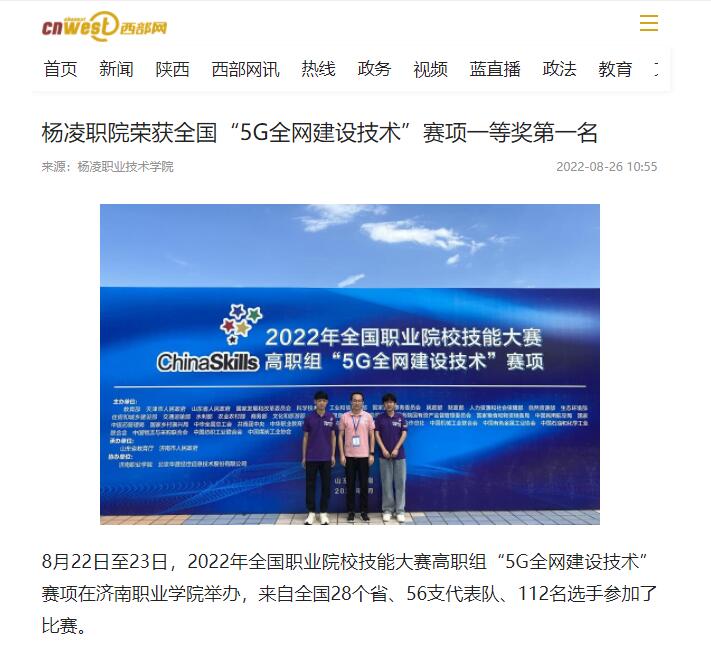 8月22日至23日,2022年全国职业院校技能大赛高职组“5G全网建设技术”赛项在济南职业学院举办,来自全国28个省、56支代表队、112名选手参加了比赛。
