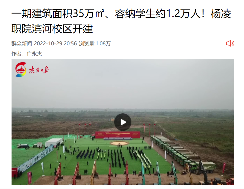 杨凌职业技术学院是杨凌示范区履行国家使命的一支重要力量,杨凌示范区将全力确保滨河校区建出速度、建出品质、建出特色。杨凌职业技术学院将紧抓发展机遇,汇聚办学力量,主动对接国家和我省重大发展战略,集聚创新资源,加大科研攻关,培养更多高素质技术技能人才。