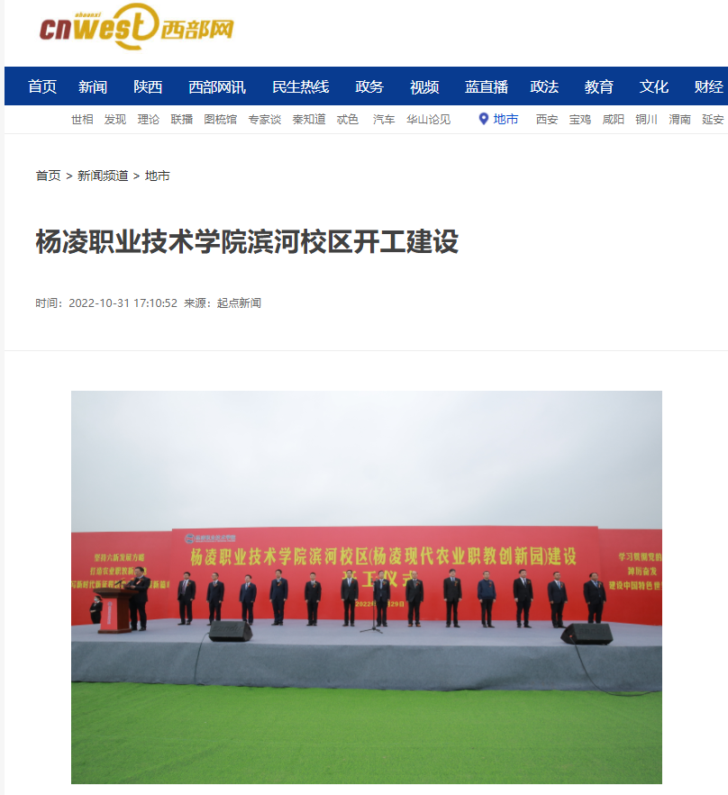 王周锁在致辞中表示,杨凌职业技术学院滨河校区建设承载着学校励志图强的光荣与梦想,是学校推进“双高”建设、升格本科职业大学、实现高质量发展的有力支撑和关键举措。全校上下将认真学习宣传贯彻党的二十大精神,以党的二十大报告中对教育、科技、人才工作的系统阐述为遵循,坚持以立德树人为根本、以强农兴农为己任,扎根杨凌、面向全国、服务世界,紧抓新校区建设这一机遇,全力打造全国农业高职教育新高地,并按照学校“十四五”规划确立的“12468”发展思路,科学实施“六新”方略,深入推进区校融合、产教融合、校企合作,持续优化办学条件,加快建设“中国特色、世界一流职业大学”。