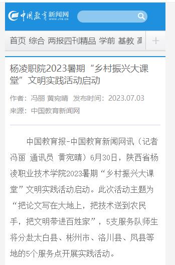 【中国教育新闻网】杨凌职院2023暑期“乡村振兴大课堂”文明实践活动启动
