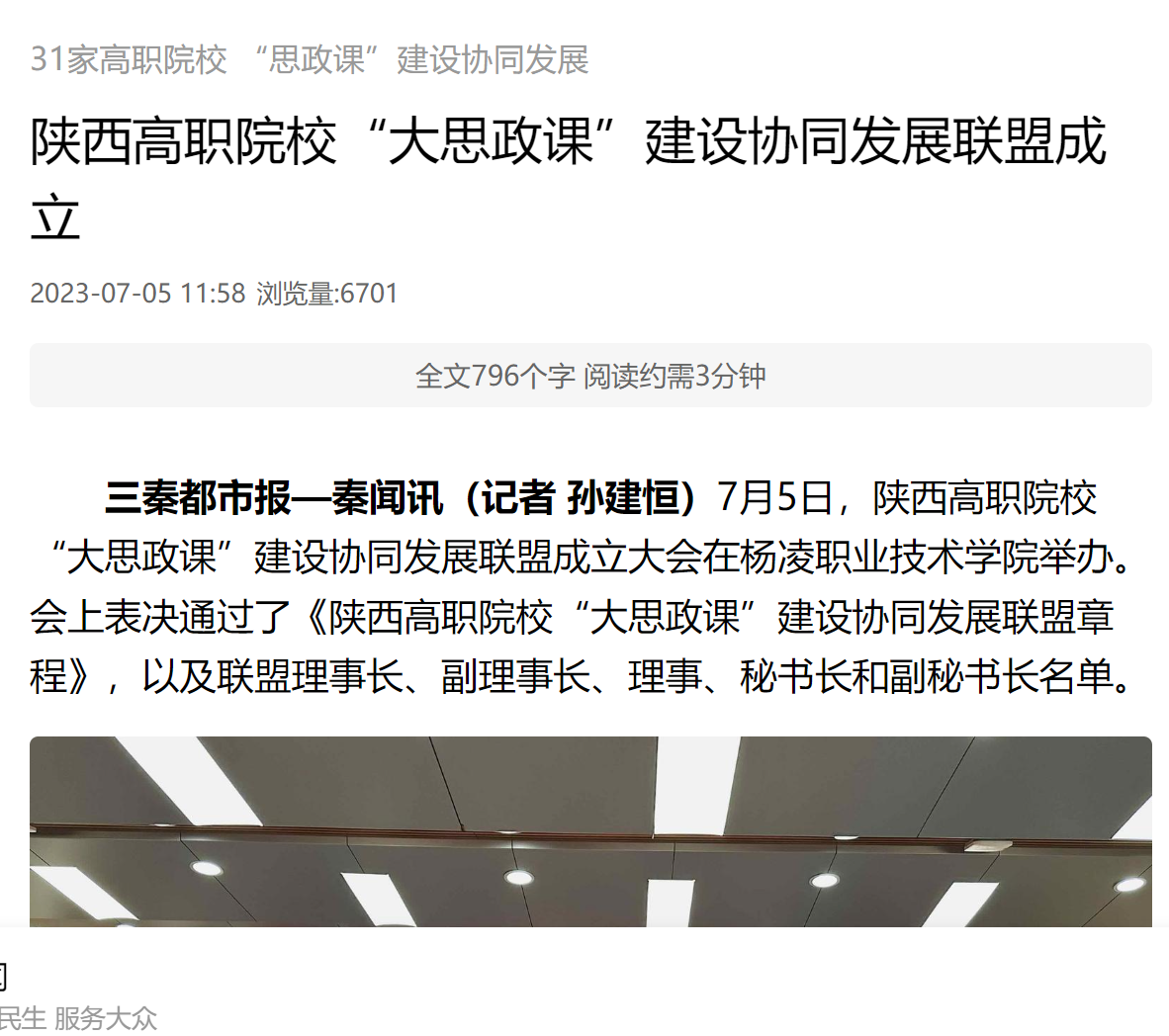 三秦都市报—秦闻讯(记者 孙建恒)7月5日,陕西高职院校“大思政课”建设协同发展联盟成立大会在杨凌职业技术学院举办。会上表决通过了《陕西高职院校“大思政课”建设协同发展联盟章程》,以及联盟理事长、副理事长、理事、秘书长和副秘书长名单。