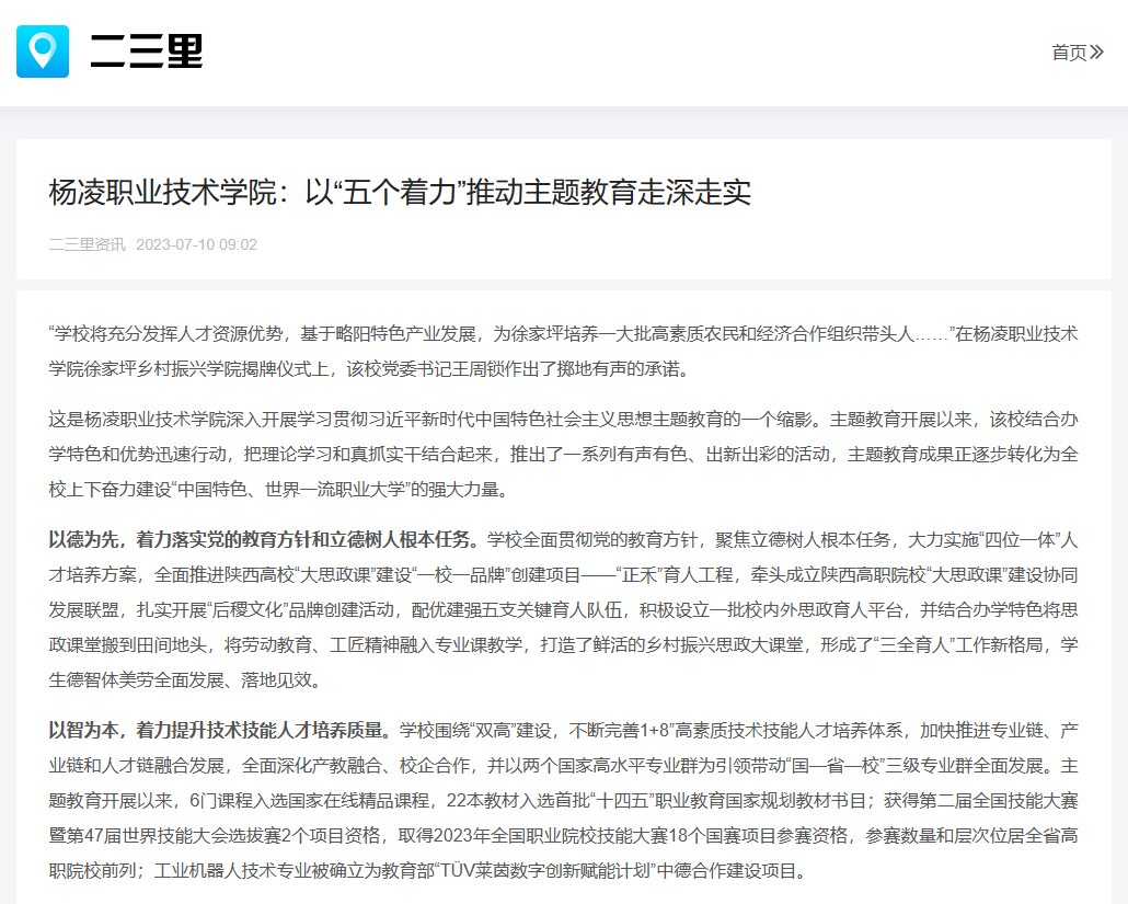 【二三里】杨凌职业技术学院:以“五个着力”推动主题教育走深走实