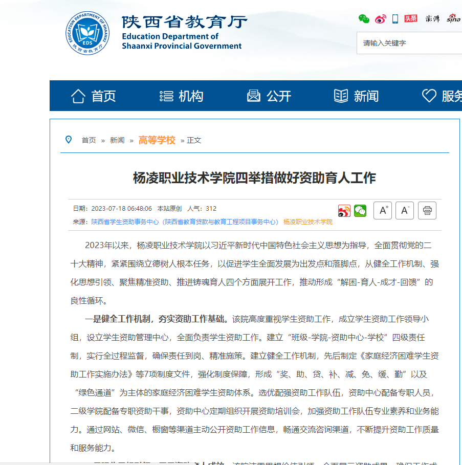 【陕西省教育厅】杨凌职业技术学院四举措做好资助育人工作