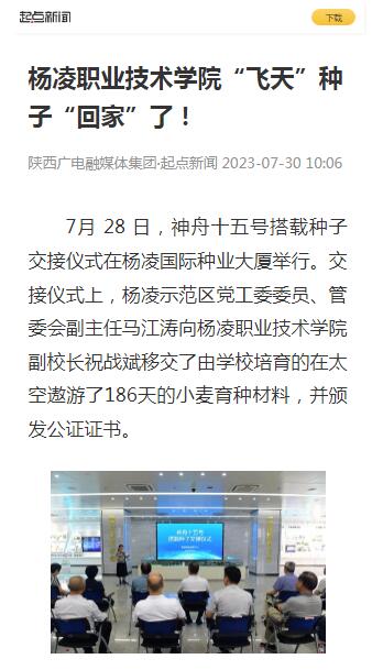 【起点新闻】杨凌职业技术学院“飞天”种子“回家”了