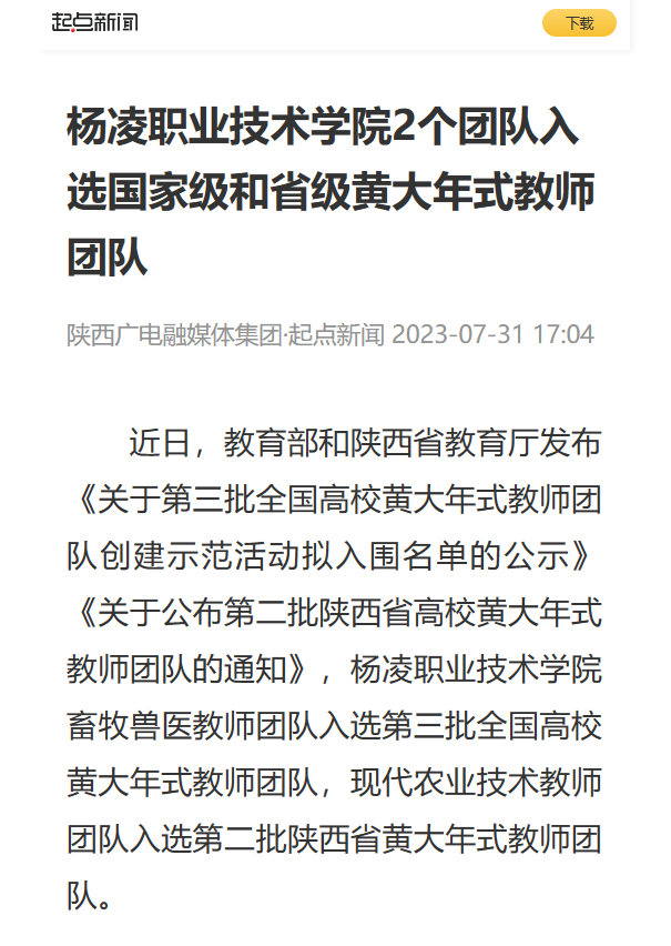 【起点新闻】杨凌职业技术学院2个团队入选国家级和省级黄大年式教师团队