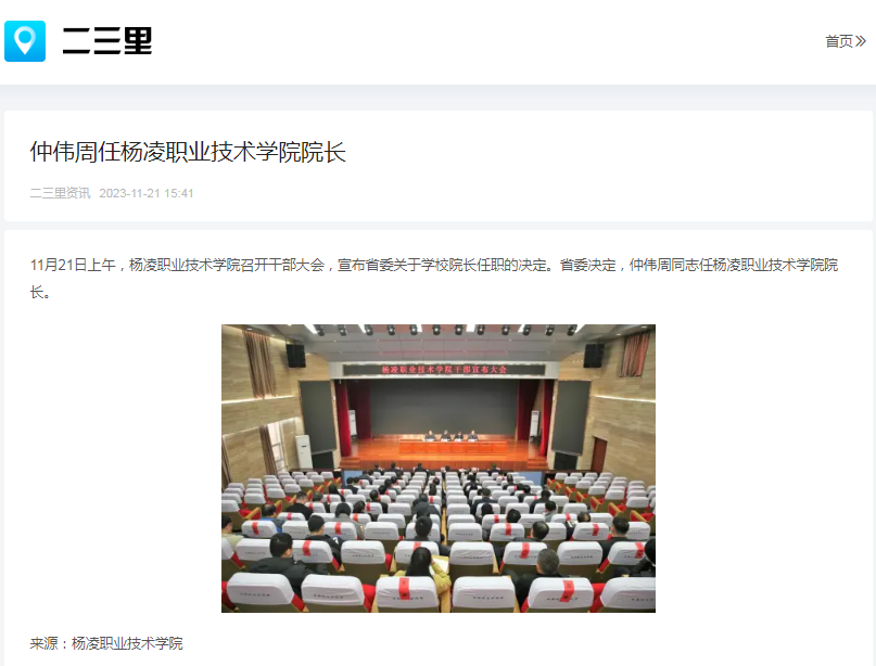 【起点新闻】仲伟周任杨凌职业技术学院院长