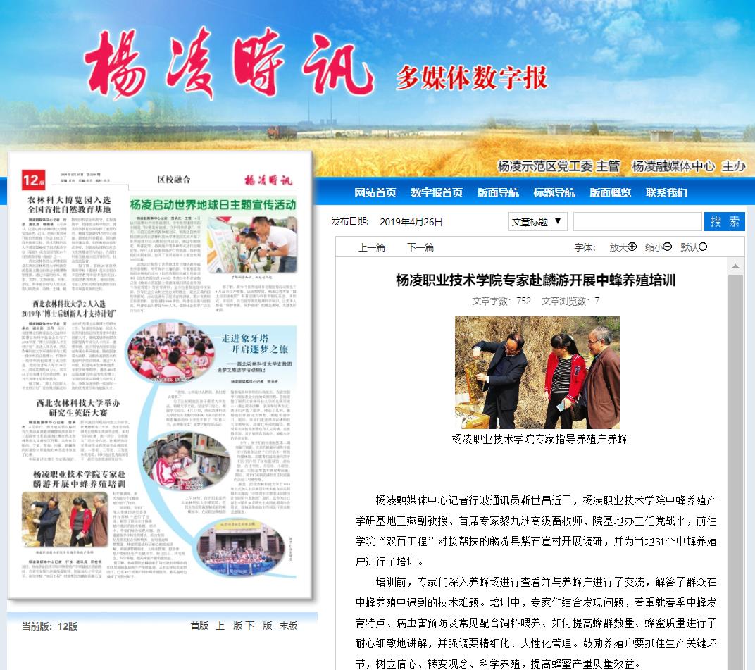 据了解,杨凌职院在麟游紫石崖村建有中蜂养殖和优质核桃栽培两个产学研基地。去年在学院专家帮助下,已有49个贫困户因中蜂养殖脱贫,紫石崖村也摘掉了贫困村帽子。