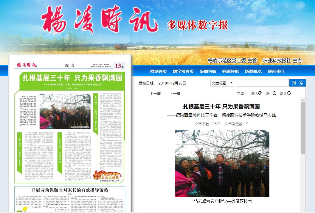 12月7日,陕西最美科技工作者表彰大会在陕西宾馆举行,大会表彰了30位长期扎根陕西,扎根基层一线,用辛勤汗水在黄土地谱写赞歌的科技工作者,杨凌职业技术学院马志峰教授位列其中。