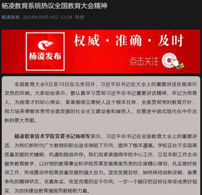 【杨凌发布】杨凌教育系统热议全国教育大会精神