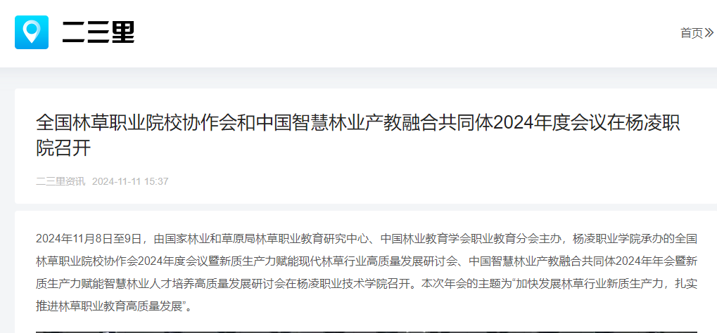 【二三里】全国林草职业院校协作会和中国智慧林业产教融合共同体2024年度会议在杨凌职院召开