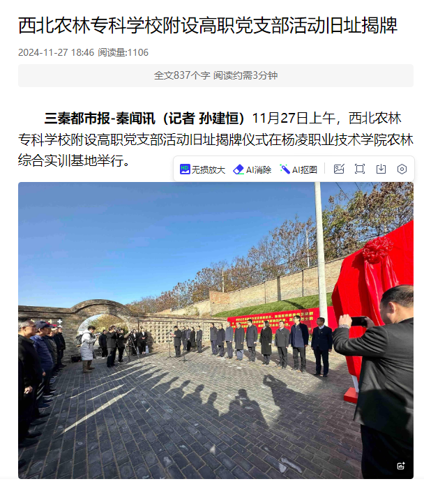 【三秦都市报】西北农林专科学校附设高职党支部活动旧址揭牌