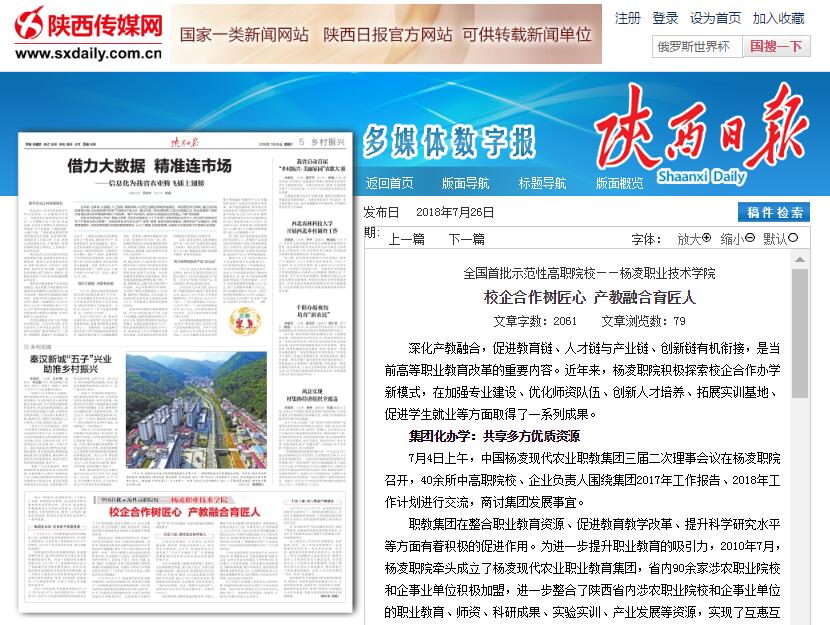 面对新形势下国家赋予职业教育的新要求、新使命,杨凌职院将加快推进与企业、行业的融合发展,采取开放、包容的办学态度,继续深化校企合作、促进产教融合,持续提高人才培养质量,不断为我国高职教育科学发展探路。