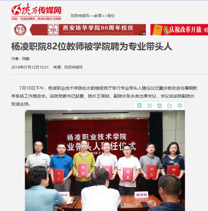 7月10日下午,杨凌职业技术学院在水韵楼报告厅举行专业带头人聘任仪式暨诊断改进与暑期教学系统工作推进会。该院党委书记赵曼、院长王周锁、副院长张永良出席会议,会议由该院副院长张迪主持。