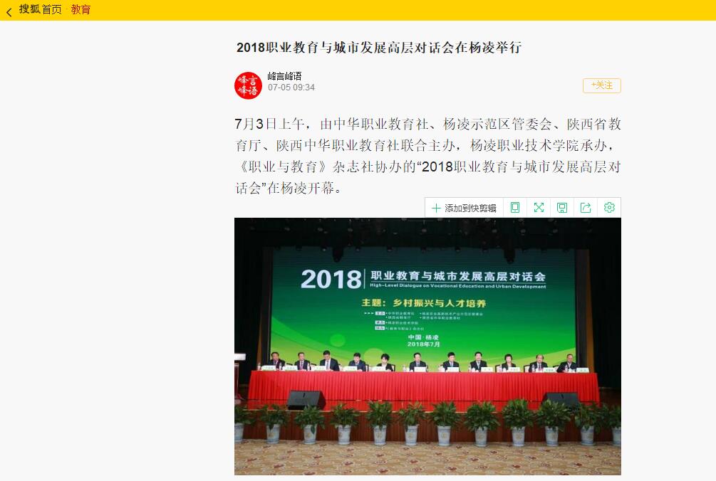 刘建林在致辞中指出,本次大会主题为“乡村振兴与人才培养”,紧紧契合党的十九大对教育、对“三农”工作的决策部署,必将成为创新人才培养模式、拓宽人才成长通道、优化城市发展空间、提升城市功能品质的智慧碰撞。陕西将以本次大会为契机,进一步加强与中华职教社的全方位、深层次合作,加快推进陕西职业教育的改革与发展。他要求,陕西高职院校要多向兄弟省份、兄弟院校学习,持续深化教育教学改革,培养出更多服务“三农”的技术技能人才。