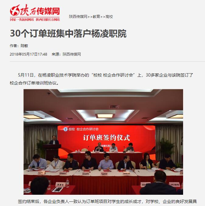 此次订单班协议的签订,使杨凌职院人才培养规格再上新台阶,提高了人才培养的针对性和实用性,达到学校、企业、学生三方共赢。