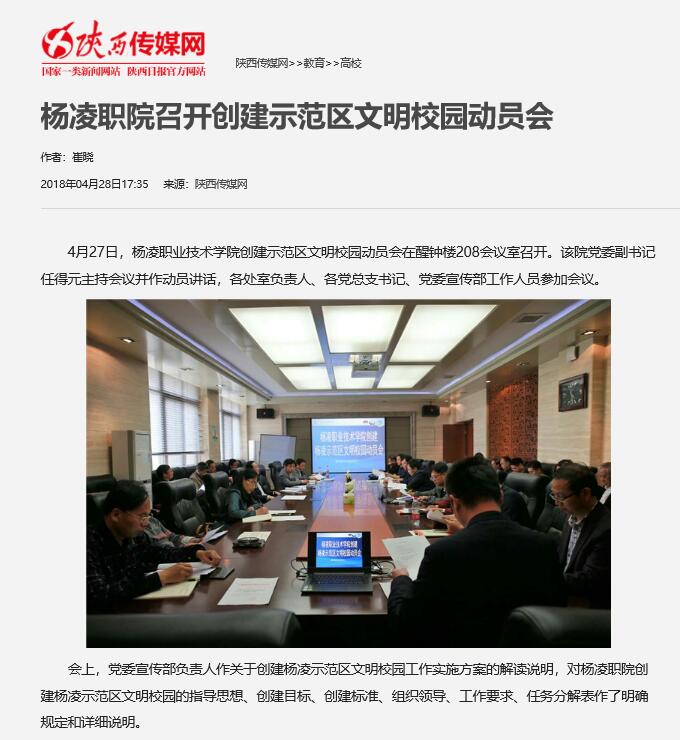 4月27日,杨凌职业技术学院创建示范区文明校园动员会在醒钟楼208会议室召开。该院党委副书记任得元主持会议并作动员讲话,各处室负责人、各党总支书记、党委宣传部工作人员参加会议。