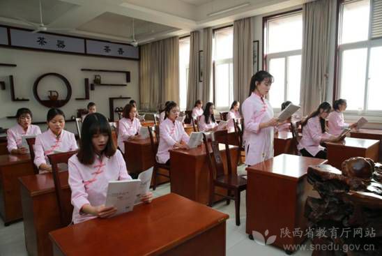杨凌职业技术学院茶艺专业学生正在诵读经典名篇《长恨歌》