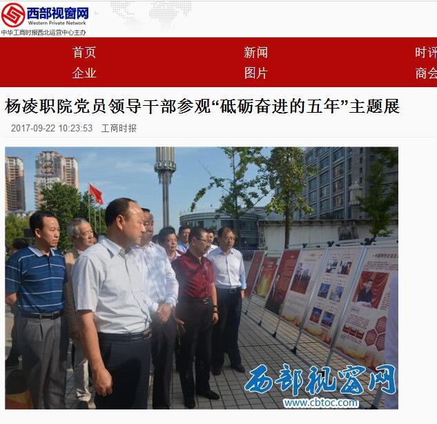 (杨凌讯 一克 韩娇)9月20日,杨凌职业技术学院党委宣传部组织各分院领导干部近50人来到杨凌政务大厦西侧广场,参观《砥砺奋进的五年——喜迎党的十九大 追赶超越在陕西》大型主题展览。杨凌职业技术学院党委书记赵曼,院长王周锁参加。 参观中,领导干部们仔细观看展板内容,认真听取讲解,不时驻足对一些资料和图片进行讨论。一组组振奋人心的数据,一个个感人至深。