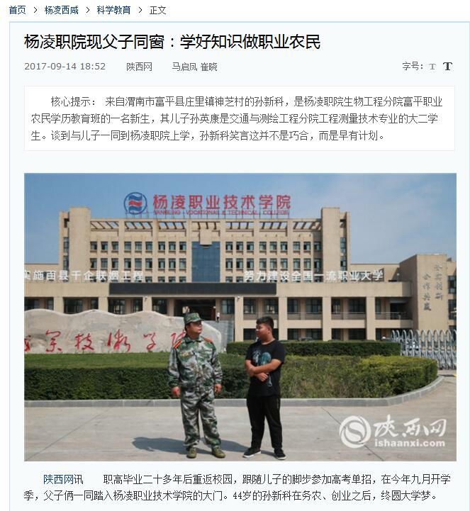 【陕西网】杨凌职院现父子同窗:学好知识做职业农民