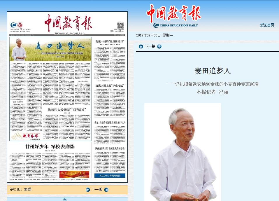 ——记扎根偏远农场50余载的小麦育种专家赵瑜