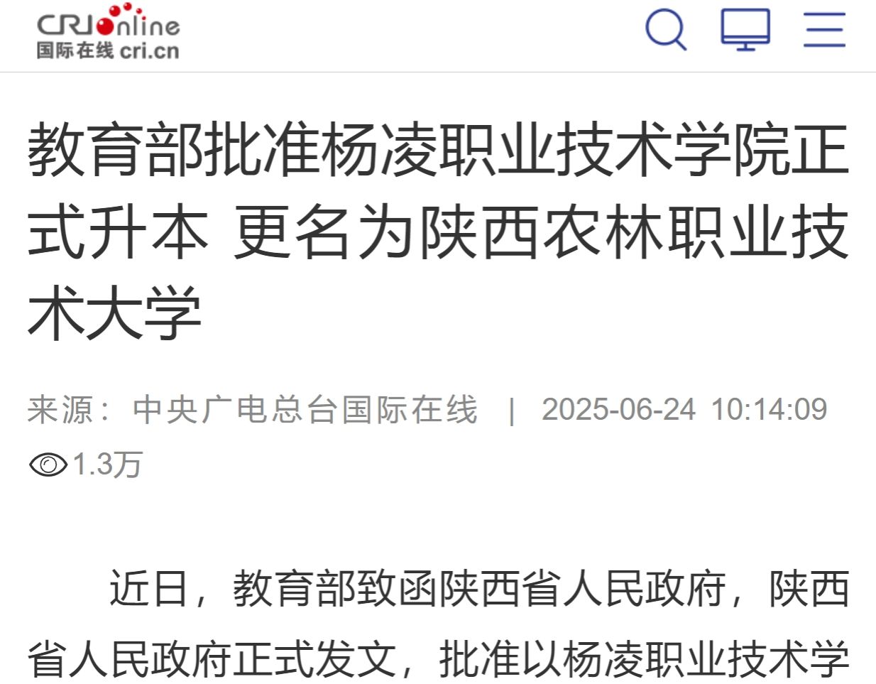 近日,教育部致函陕西省人民政府,陕西省人民政府正式发文,批准以杨凌职业技术学院为基础设立365官网。这标志着陕西省公办本科层次职业学校实现“零”的突破。