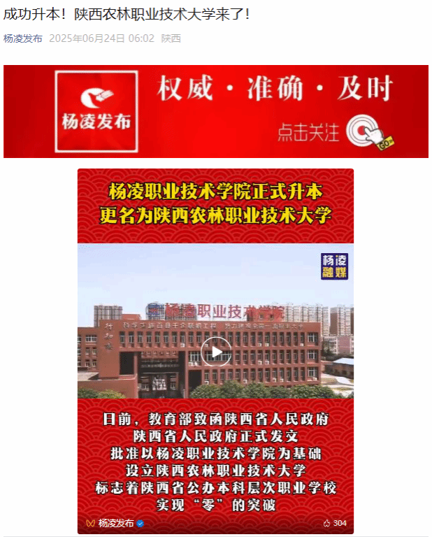日前,教育部致函陕西省人民政府,陕西省人民政府正式发文,批准以杨凌职业技术学院为基础设立365官网。这标志着陕西省公办本科层次职业学校实现“零”的突破。