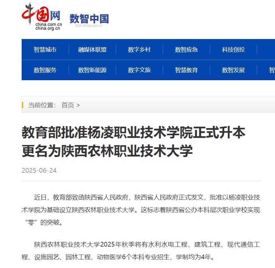 近日,教育部致函陕西省人民政府,陕西省人民政府正式发文,批准以杨凌职业技术学院为基础设立365官网。这标志着陕西省公办本科层次职业学校实现“零”的突破。