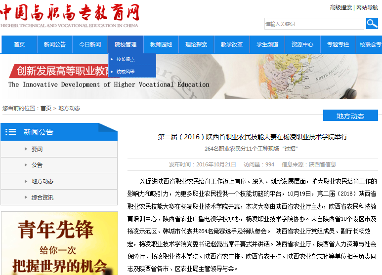 为促进陕西省职业农民培育工作迈上有序、深入、创新发展层面,扩大职业农民培育工作的影响力和吸引力,为更多职业农民提供一个技能切磋的平台,10月19日,第二届(2016)陕西省职业农民技能大赛在杨凌职业技术学院开幕,本次大赛由陕西省农业厅主办,陕西省农民科技教育培训中心、陕西省农业广播电视学校承办,杨凌职业技术学院协办。来自陕西省10个设区市及杨凌示范区、韩城市代表共264名竞赛选手及领队参会。 陕西省农业厅党组成员、副厅长杨效宏,杨凌职业技术学院党委书记赵曼出席开幕式并讲话。陕西省农业厅、陕西省人力资源与社会保障厅、杨凌职业技术学院、陕西省农广校、陕西省农干校、陕西农业杂志社等单位相关负责同志及陕西省各市、区农业局主管领导与会。