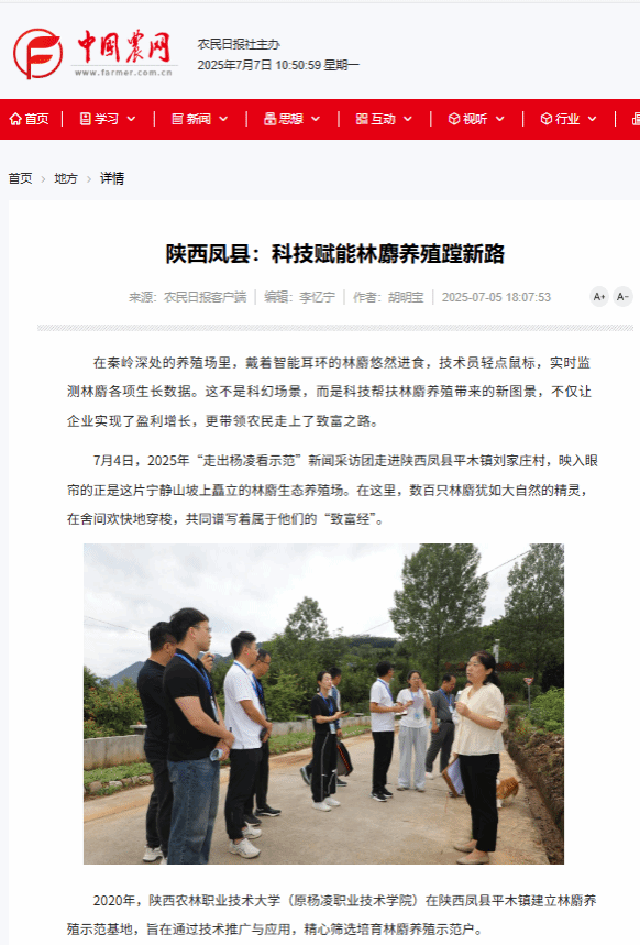 7月4日,2025年“走出杨凌看示范”新闻采访团走进陕西凤县平木镇刘家庄村,映入眼帘的正是这片宁静山坡上矗立的林麝生态养殖场。在这里,数百只林麝犹如大自然的精灵,在舍间欢快地穿梭,共同谱写着属于他们的“致富经”。