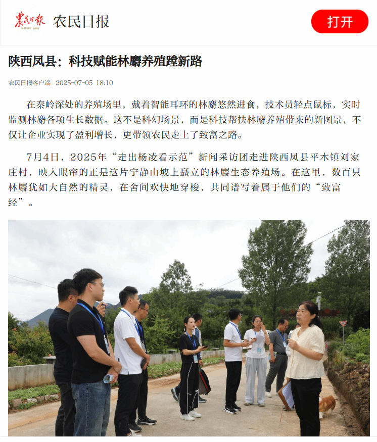 7月4日,2025年“走出杨凌看示范”新闻采访团走进陕西凤县平木镇刘家庄村,映入眼帘的正是这片宁静山坡上矗立的林麝生态养殖场。在这里,数百只林麝犹如大自然的精灵,在舍间欢快地穿梭,共同谱写着属于他们的“致富经”。